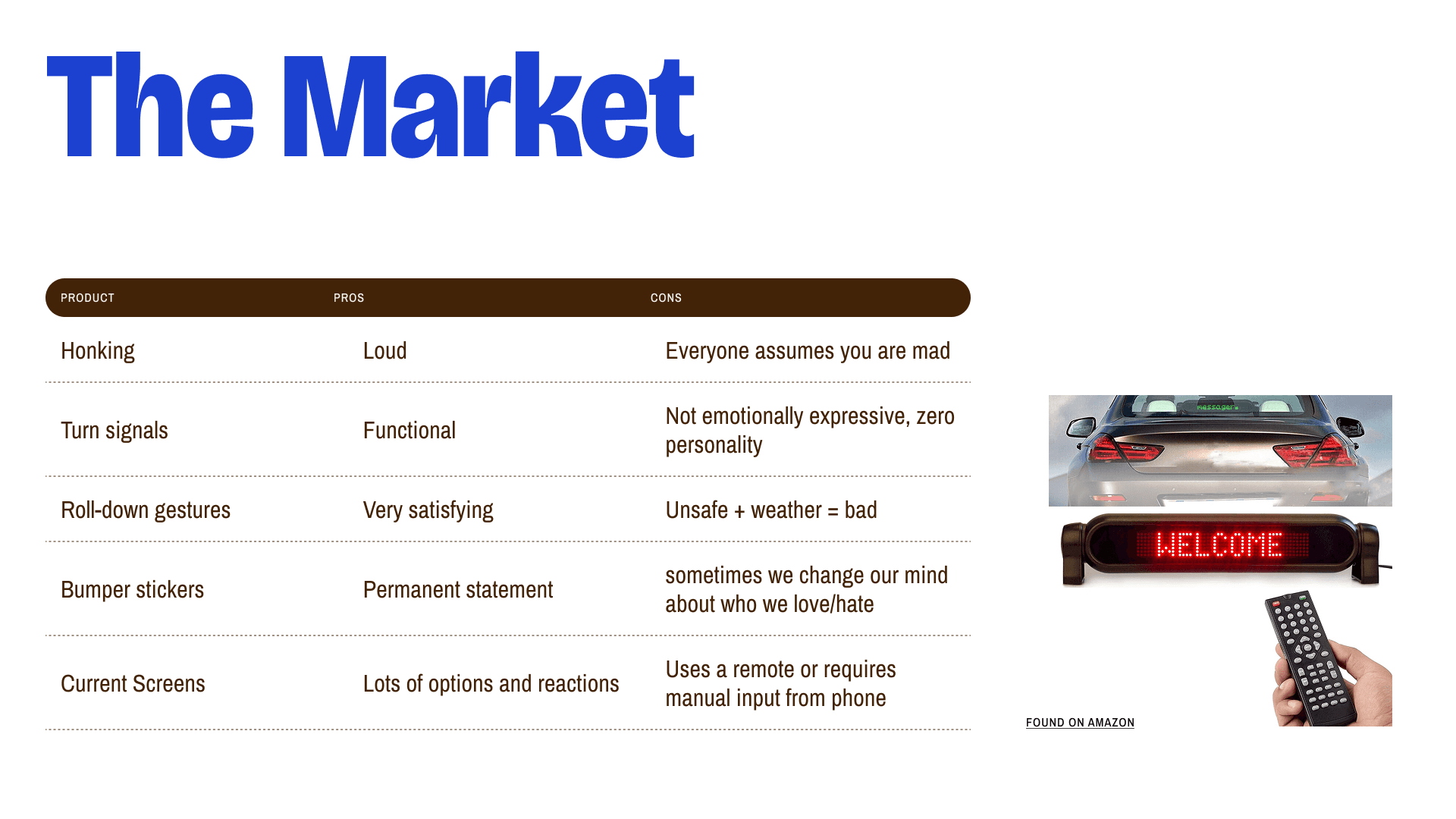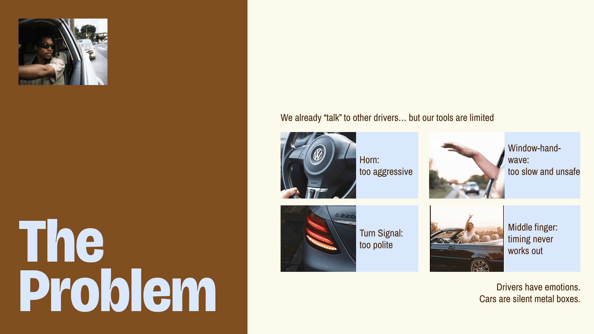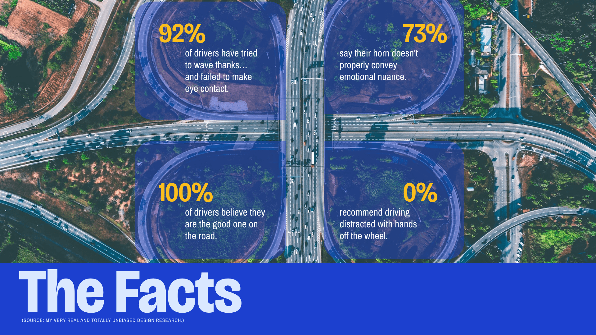 Free Hands explores how Natural User Interfaces can improve communication and safety while commuting by using gesture recognition as the primary interaction method. I designed a system in which a dash-mounted camera interprets driver hand motions and sends visual feedback to an LED display, supported by a mobile setup app that establishes gestures, connectivity, and user settings. Through this process I developed the full interaction flow, visual identity, prototype screens, and NUI logic to demonstrate how gesture-based design can create a more intuitive and accessible driving experience.